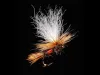 Hook: Std Dry #14 - #18 Thread: Brown Body: Olive brown Rib: Fine Gold Wire Hackle: Ginger Grizzly Wing: Web Wing