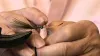 Tying a foam hopper with blue raffia wings in a hook TMC100 size 12 (audio in spanish)