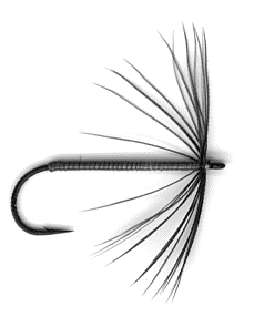 | Hackle | Sparse front hackle from soft black hen |