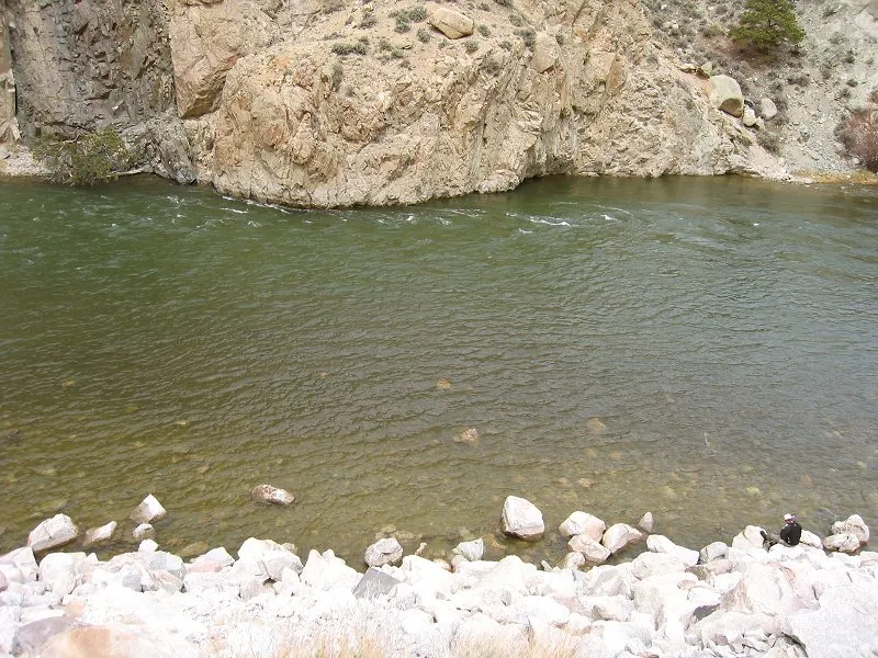 An excellent run near the beginning of the effluent at Miracle Mile on the North Platte River. (Notice Kurt in the lower right of the picture)
