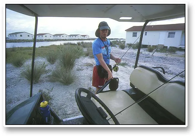 Fishing can take place in the most unlikely places. Here Jan and I are venturing to some channels in a ghost like housing project right behind our resort. The houses were built as a replacement for homes destroyed by the hurricanes, but were too expensive for people to buy, so now most of them are empty.