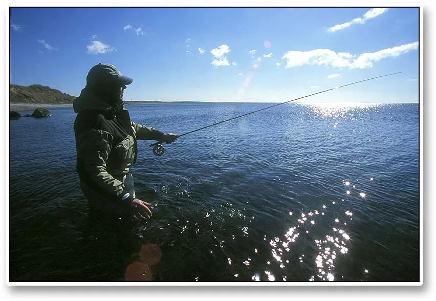 Henning casts on the coast. In spite of the spring sun it is bitterly cold.