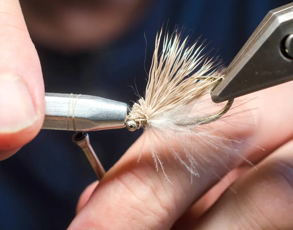 Wrap the thread 2-3 times around the bodkin and slip its hole over the eye.