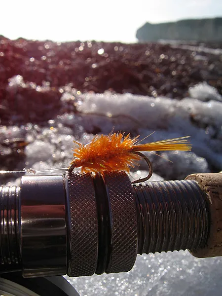 The perfect winter fly in a perfect winter setting. By going low I managed to get the coast visible in the background.