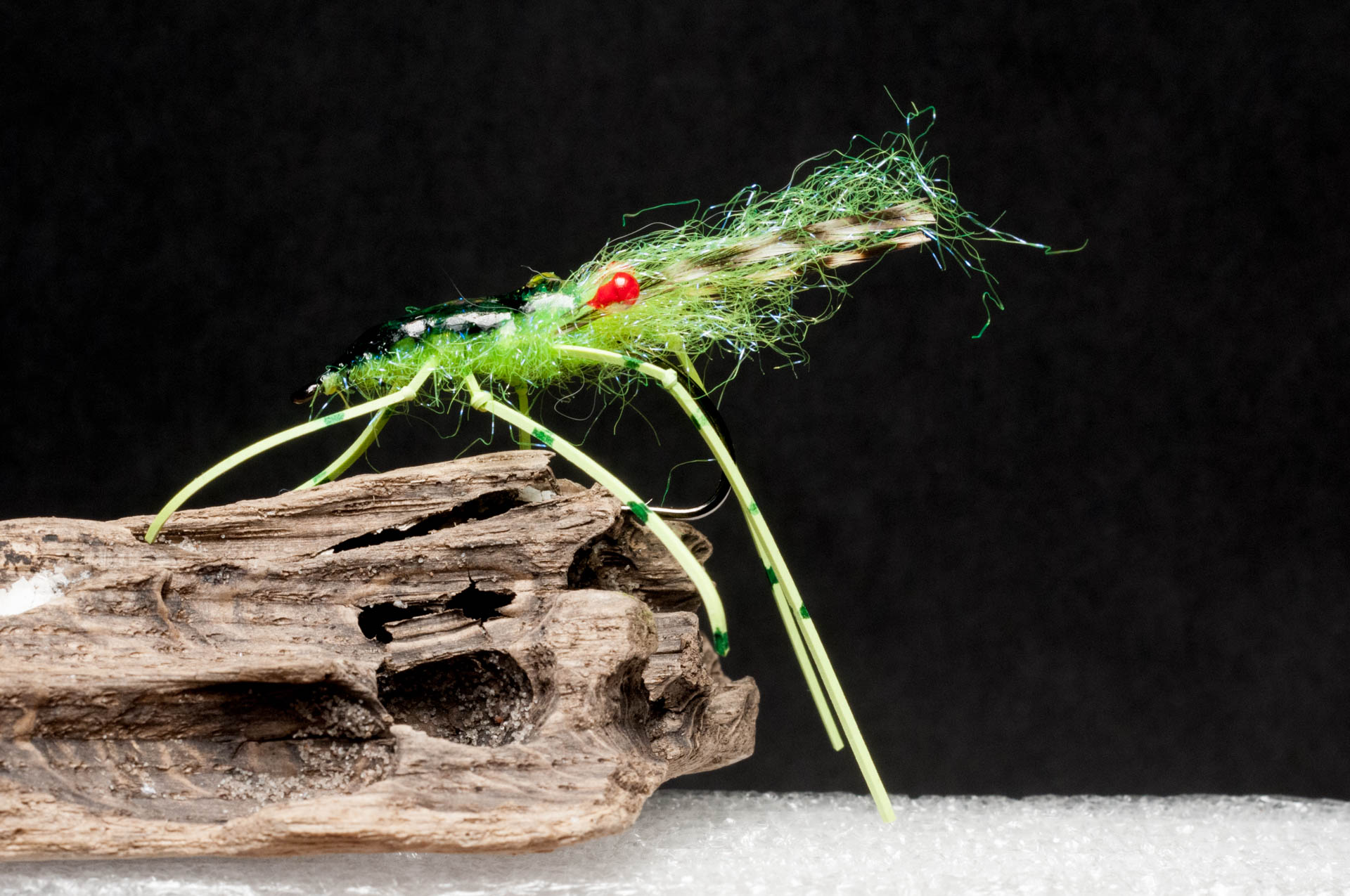 A very green shrimp tied for sea run brown trout by German Kai Nolting.